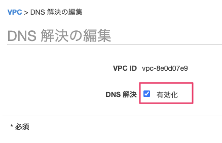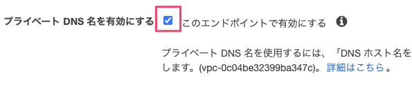『プライベートDNS名を有効にする』にチェックをつけます。