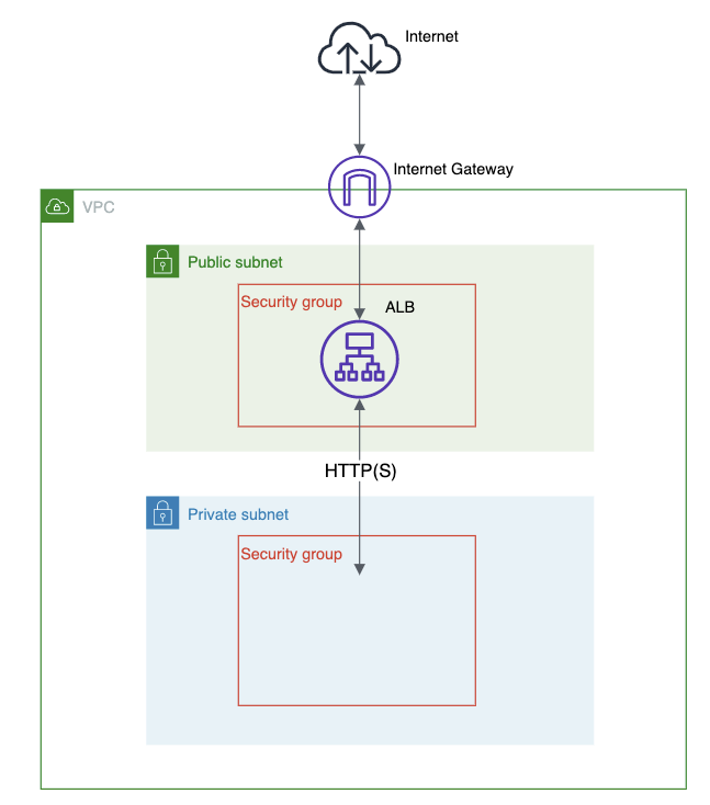 ロードバランサーが配置されたVPC環境におけるサブネットやセキュリティグループの作成手順の詳細はAWS EC2にALBを導入し、Webサーバーのロードバランシングを実現する手順で紹介していますので参照してください。
