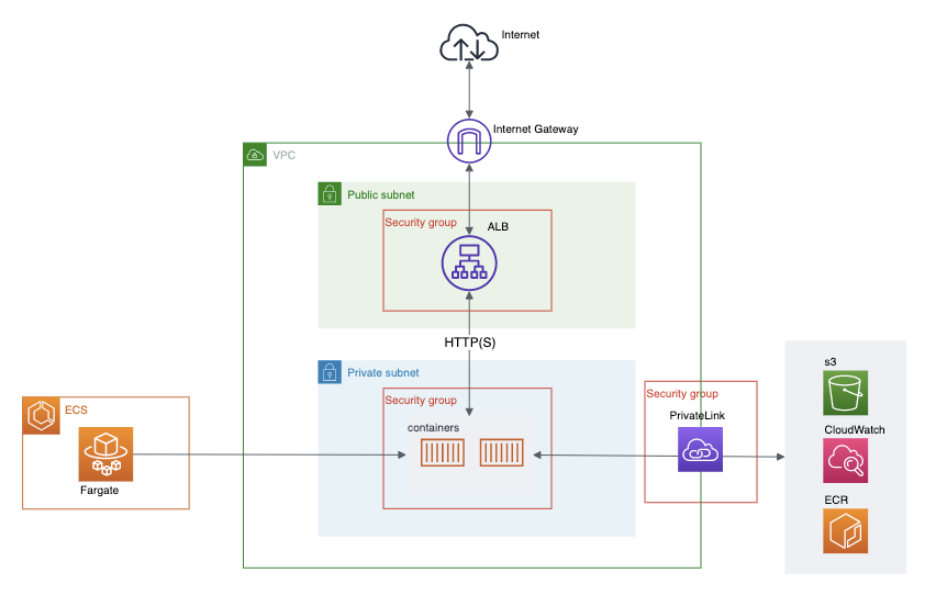 今回はFargateで起動しているタスク(Dockerコンテナ)をPrivateLinkとALBを利用してロードバランシングさせる手順について紹介します。