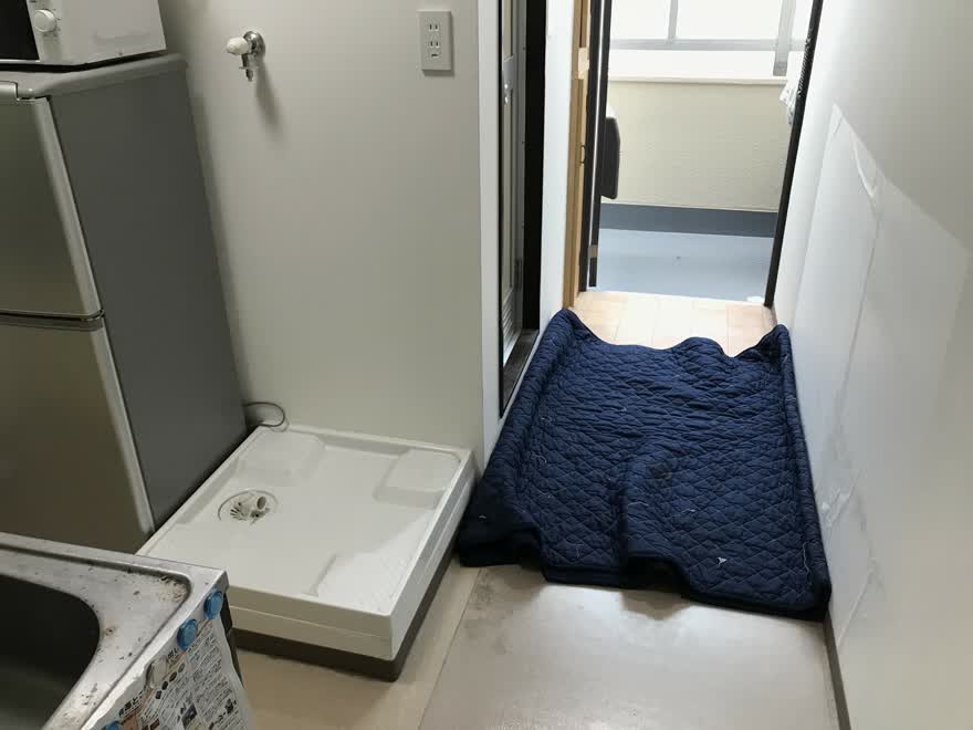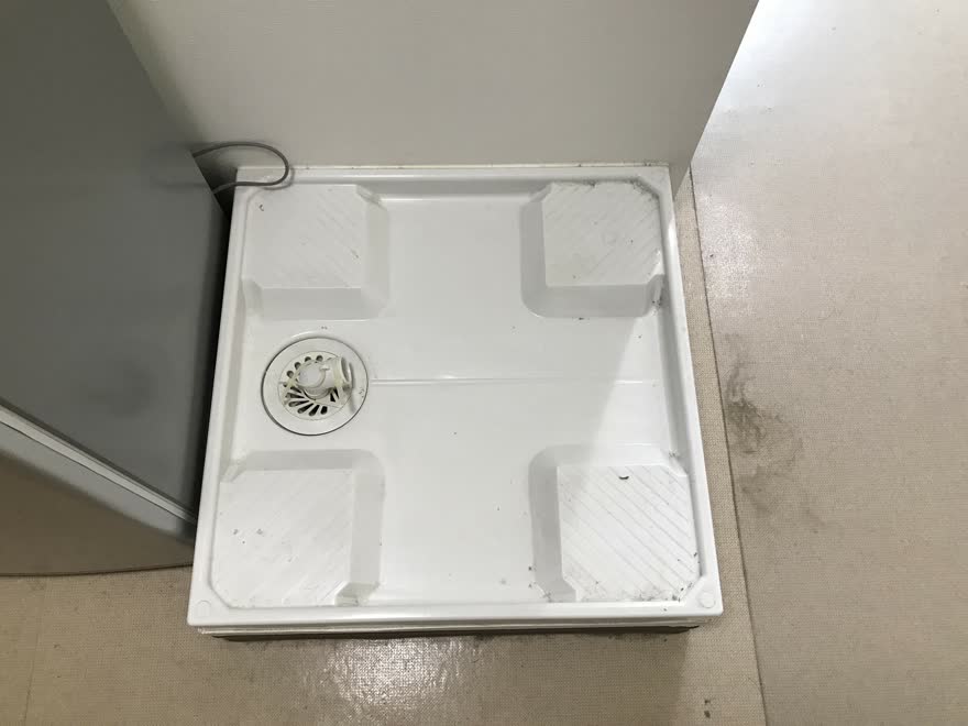 洗濯機を回収してもらうと、普段は洗濯機が乗っかっていて見ることのできない防水パンが見れます。