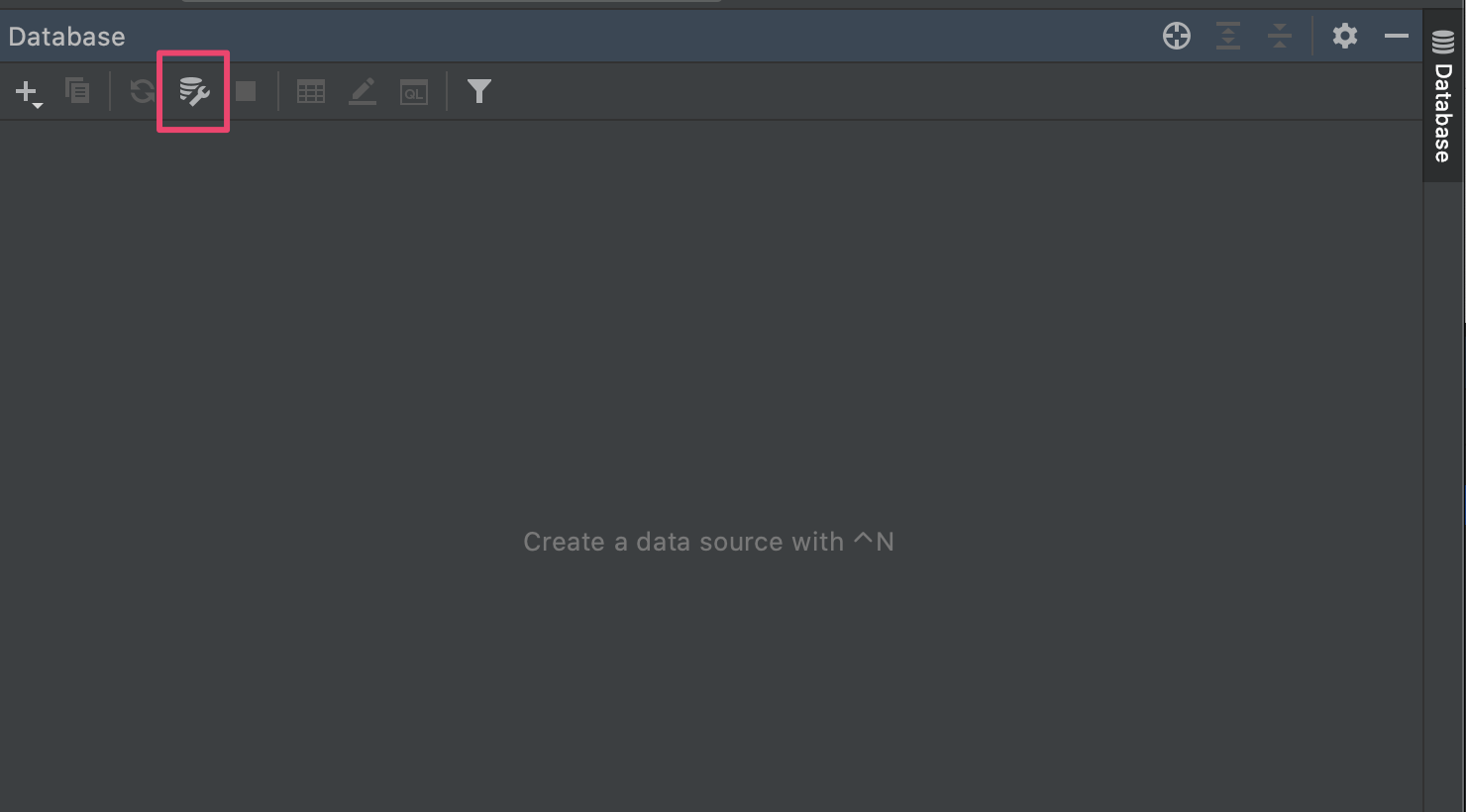「View」 → 「Tool Windows」 → 「Database」を選択し、Database画面にあるData Source Propertiesアイコンをクリックします。