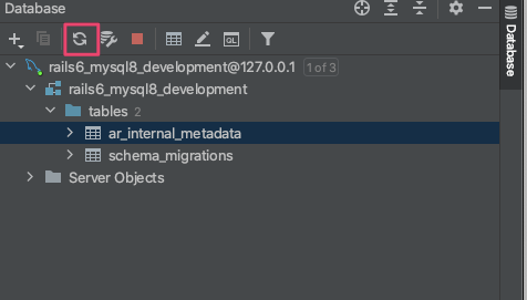 Refreshアイコンをクリックするとデータベースの情報を更新できます。