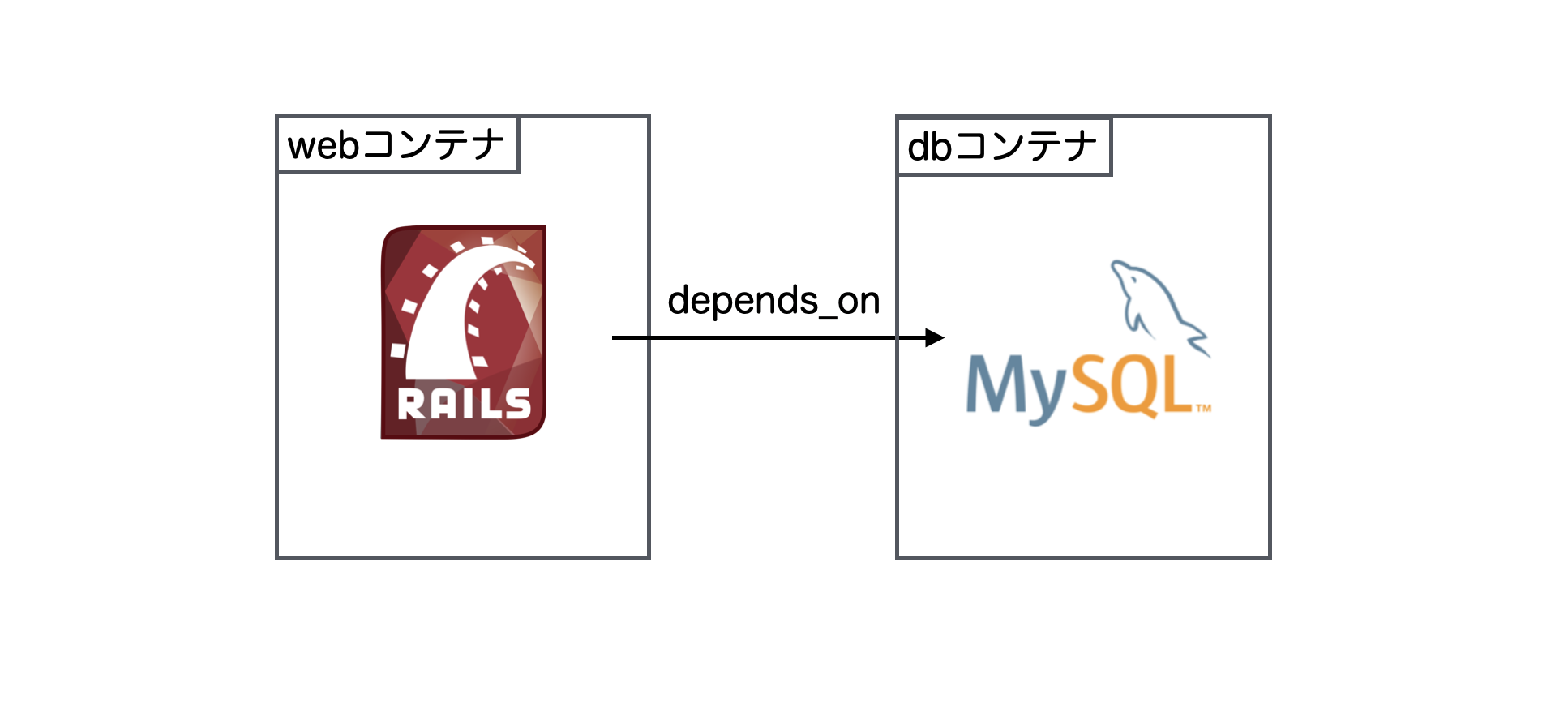 今回は以下のようなRailsとMySQLを組み合わせたDocker Compose環境を例として利用します。
