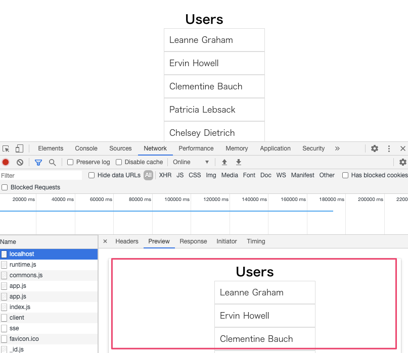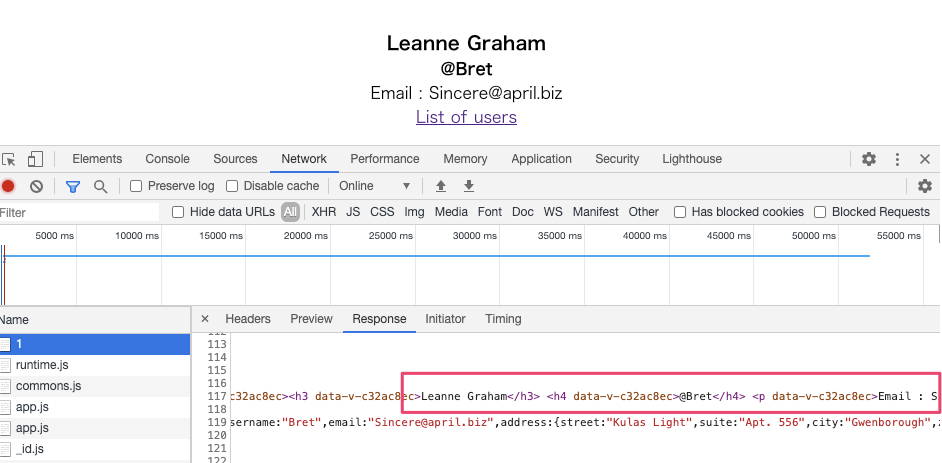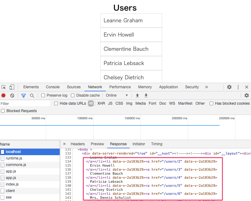 実際の画面がプレビューで表示されていることから分かるとおり、SSGではレンダリングされた画面がレスポンスとして返ってきます。