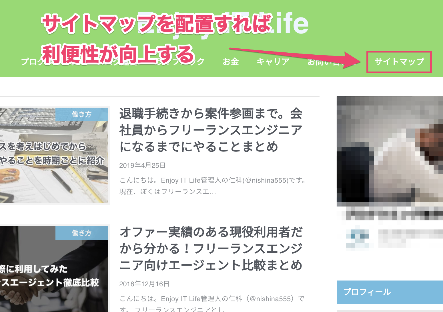 たとえば、ヘッダーにサイトマップを配置しておけば、よりユーザビリティの高いサイトデザインになるでしょう。