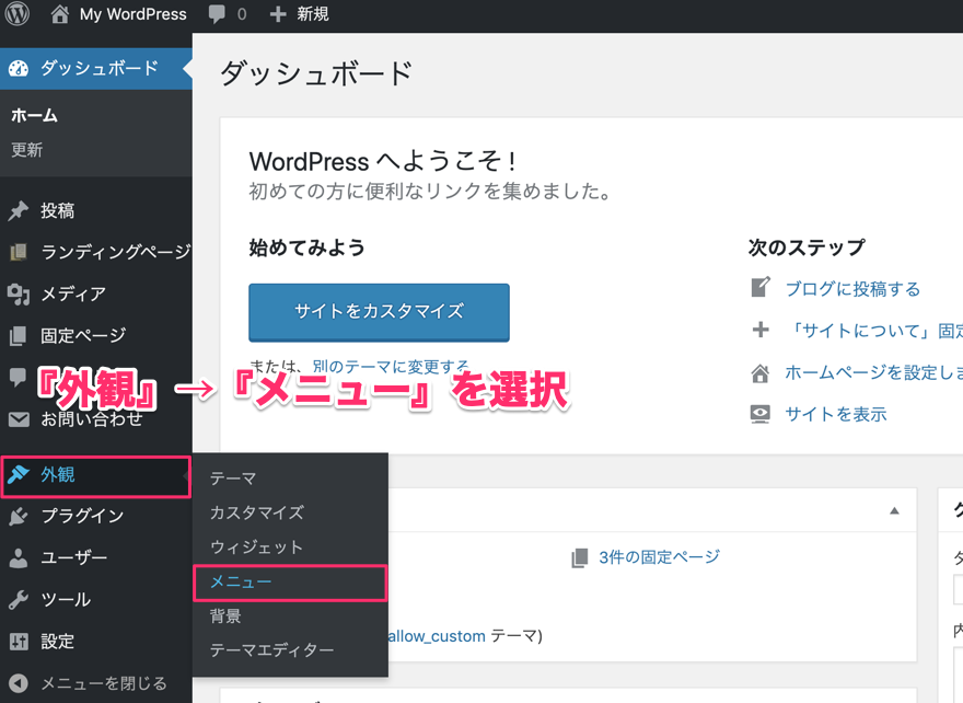 固定ページをメニューに追加する