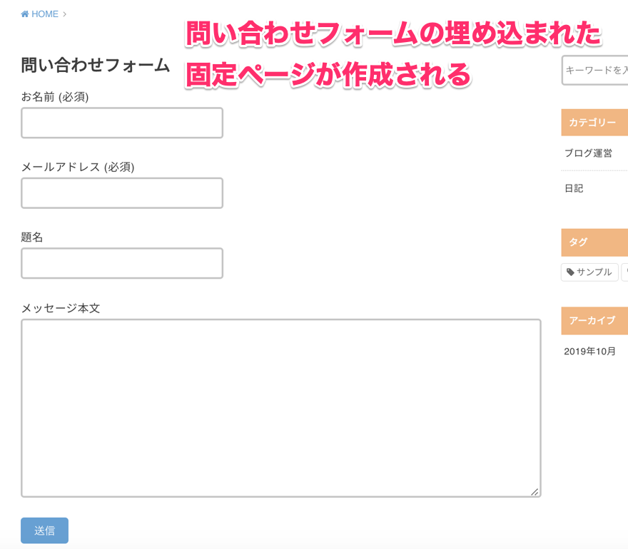 問い合わせフォームを固定ページに追加する