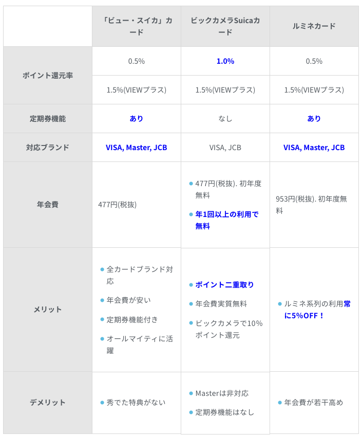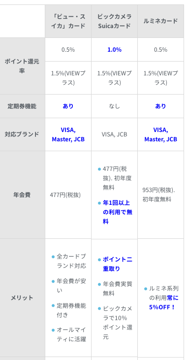 | 「ビュー・スイカ」カード | ビックカメラSuicaカード | ルミネカード | |