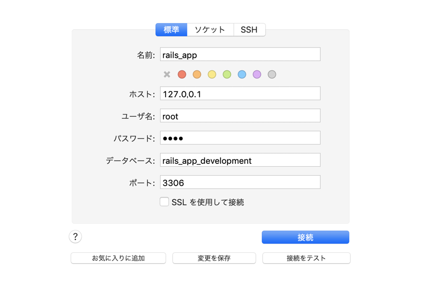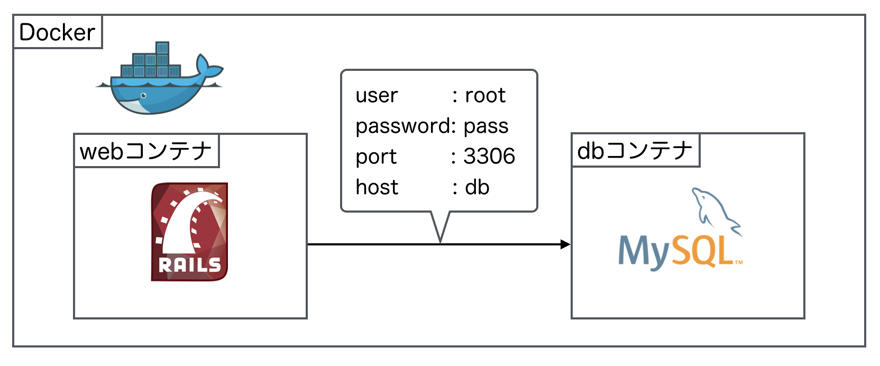 図にも記載していますが、Ruby on RailsからMySQLへ接続する際の設定は以下のようにします。