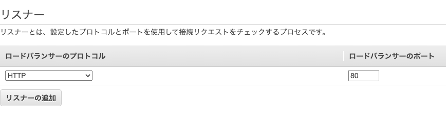 リスナーのプロトコルは『HTTP』を追加します。