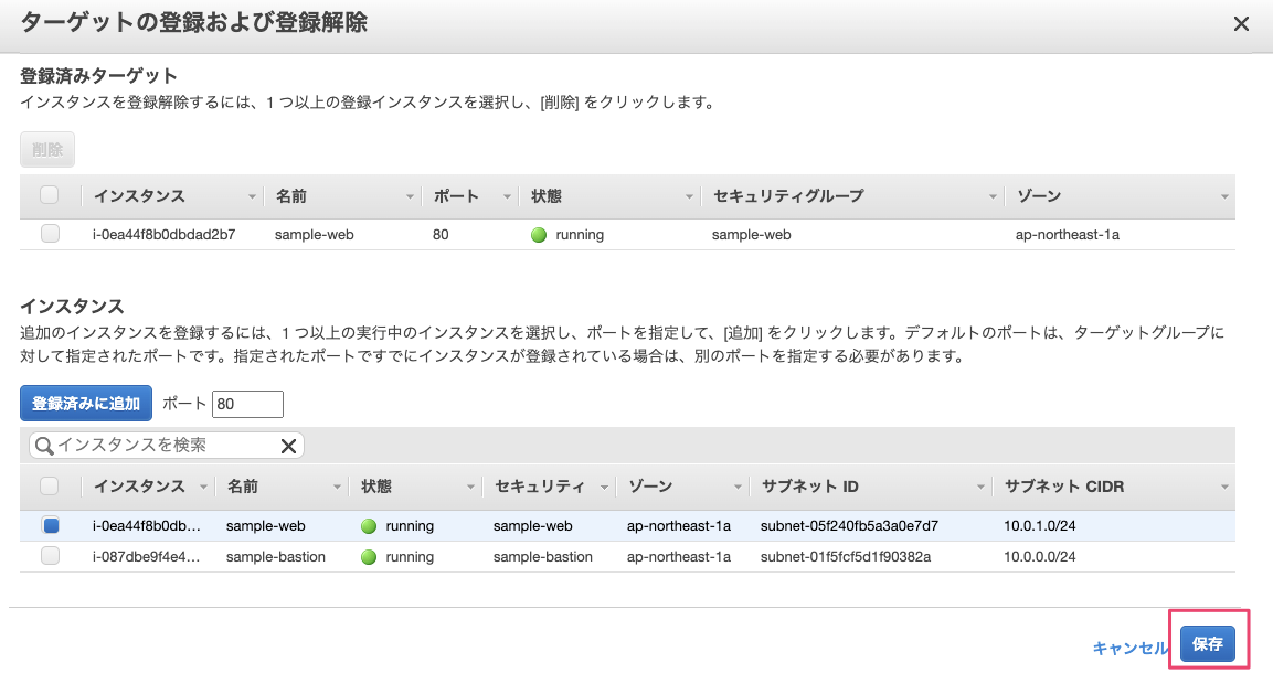 ターゲットグループにEC2を紐づける