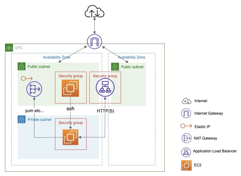 今回は『踏み台サーバーとNAT Gatewayを利用したセキュアなAWS EC2環境構築手順』の記事で紹介している環境が既に構築されている前提で話を進めます。