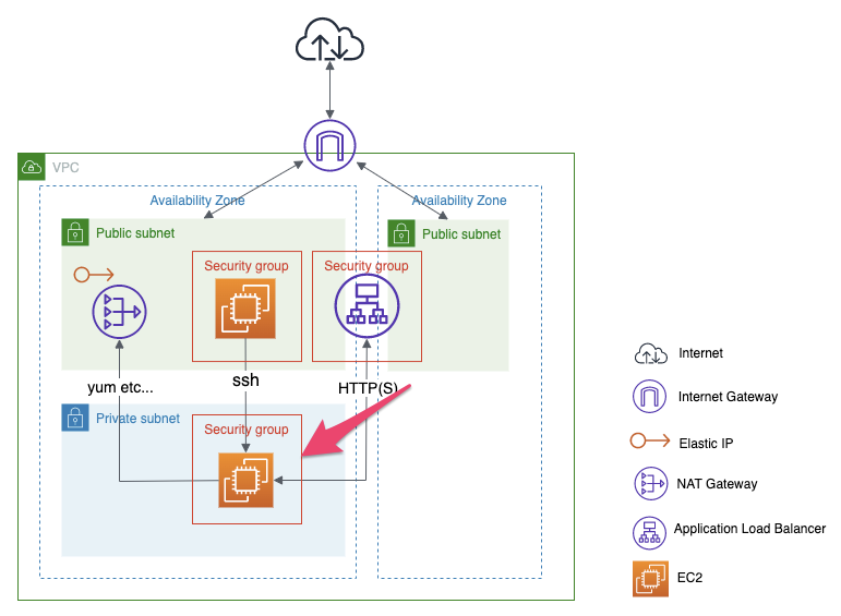 - WebサーバーへのHTTPアクセスはALB経由で行う