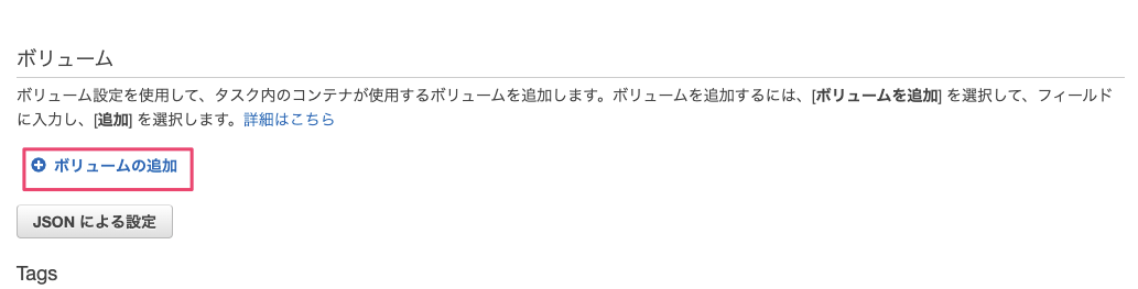 なお、今回は利用しませんがデータボリュームを利用する際は『ボリュームの追加』の項目から行ってください。