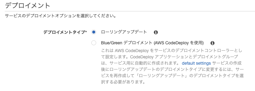 『デプロイメントタイプ』は『ローリングアップデート』にします。