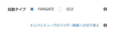 『起動タイプ』にFARGATEを選択します。
