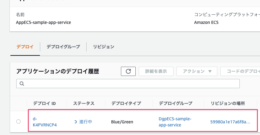サービスが更新されると、CodeDeployのアプリケーションのデプロイが実行されます。