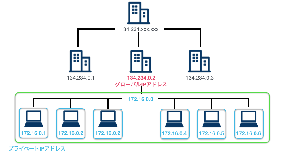 | プライベートアドレス | 10.0.0.0 ~10.255.255.255 | 172.16.0.0 ~172.31.255.255 | 192.168.0.0 ~192.168.255.255 |