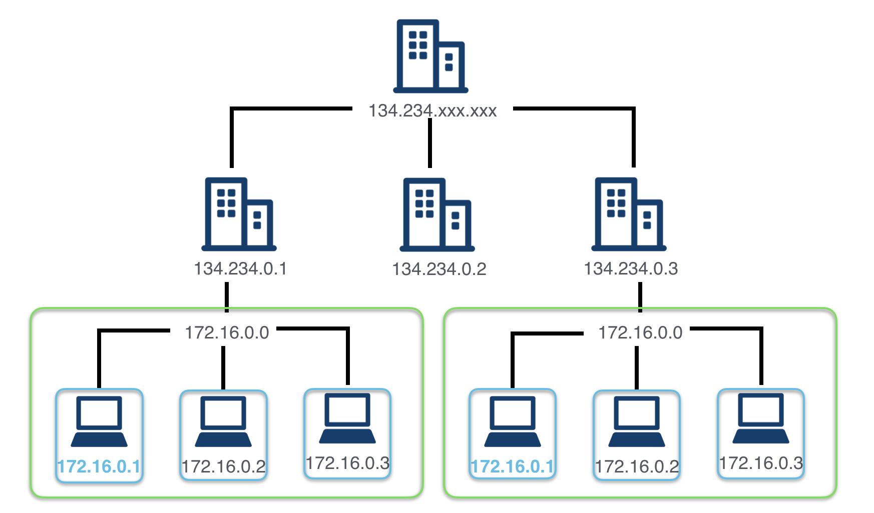 青で囲われた部分がホストだとします。 この場合、各ホストごとに0.1, 0.2のようにホスト部の値は異なります。
