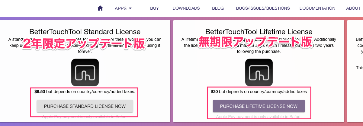 | アップデート期間は2年間だけでもいいので、BTTをずっと使いたい | BetterTouchSnapを購入 |