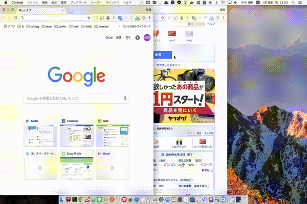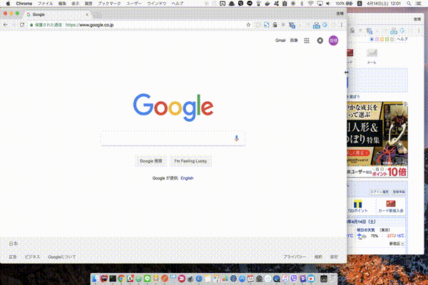 Macユーザーのみなさん、ウィンドウの大きさや位置をショートカットでサクサク変えたい!って思ったことはありませんか? 例えば、「2つウィンドウを開いていて、1つを左半分、もう1つを右半分に移動させたい」というとき、以下のような感じでウィンドウをカーソルで操作して消耗してる人はいませんか?