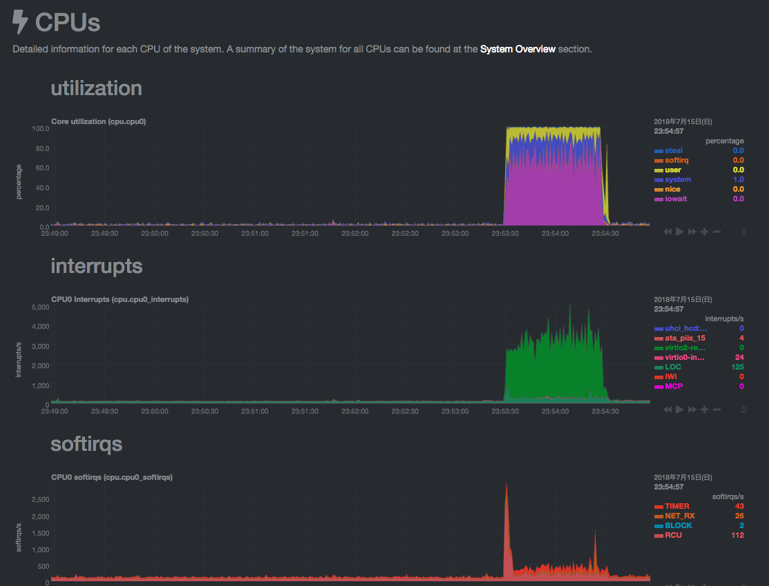 netdataでは概要だけでなく、例えばCPUの詳細情報なども見ることができます。