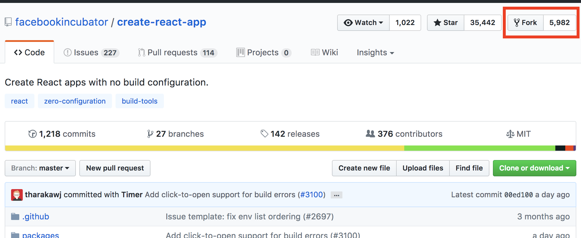 今回の説明では、facebookのcreate-react-appというリポジトリを実際にForkする例をもとに話を進めていきます。