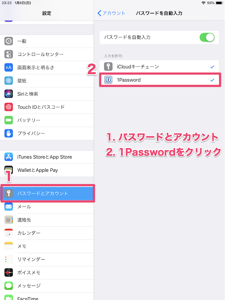 では、iPad/iPhoneで1Passwordを有効にする手順について説明をします。