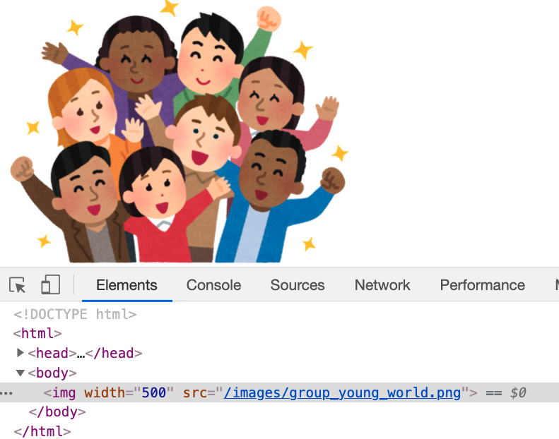 キャッシュ配信するサンプルとして今回はpublic/images/group_young_world.pngという画像を用意します。