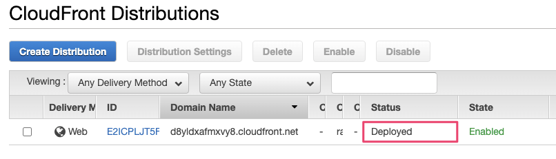 設定に問題がなければ、設定完了後しばらくするとステータスが『Deployed』になります。