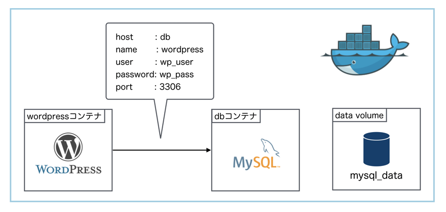 WORDPRESS_DB_NAME: wordpress # MYSQL_DATABASEと一致させる