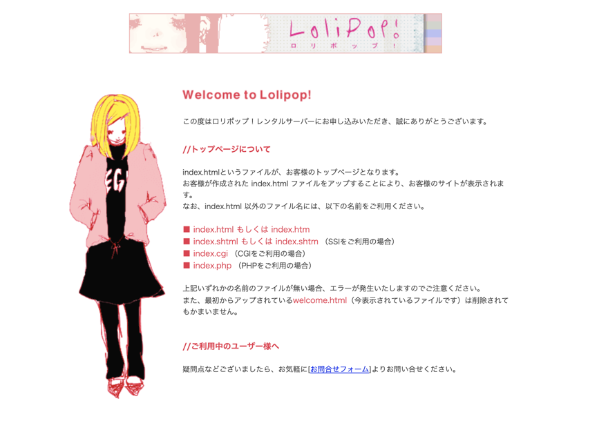 ロリポップ!Webサーバーの初期画面なお、ネームサーバーの変更が完了されるまでに、2-3日かかる場合もあるので1、独自ドメインでサーバーに接続できない場合はしばらくしてから改めて確認しましょう。