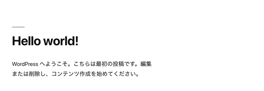 設定完了後、独自ドメインで以下のようなWordPressのトップページが表示されればOKです。