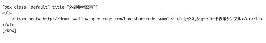 例えば以下のようにショートコードを利用すれば、ボックスのデザインは以下のようになります。