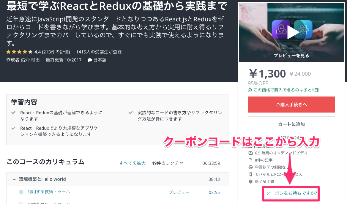 - Udemyが用意するクーポン