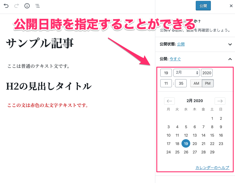 公開日の時間を指定することで予約投稿をすることも可能です。