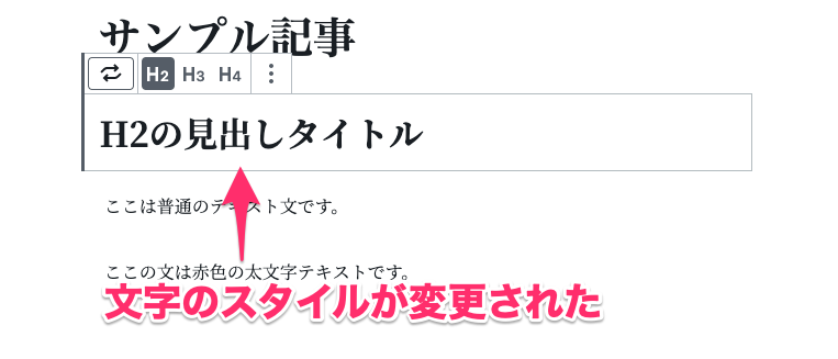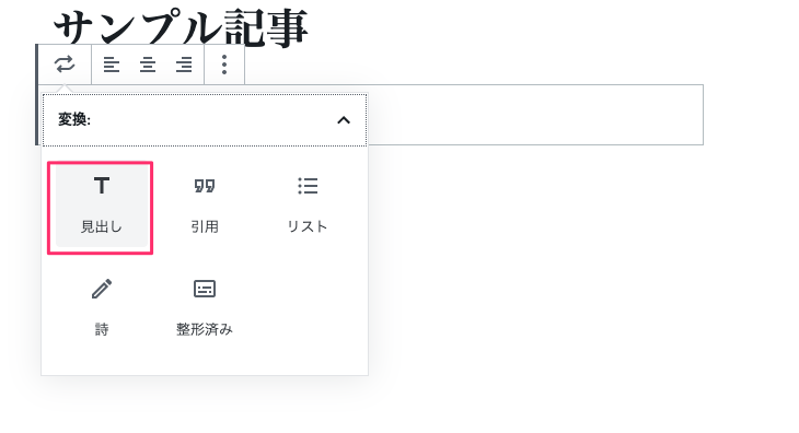 例えば、テキストを見出しにする場合は左のアイコンの『見出し』を選択します。