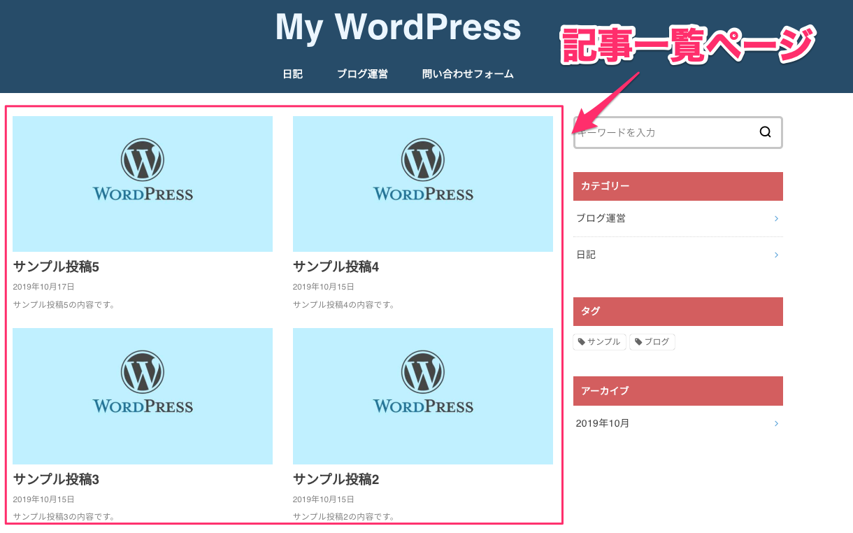 WordPressでは同一のカテゴリー・タグごとに記事を一覧表示できます。