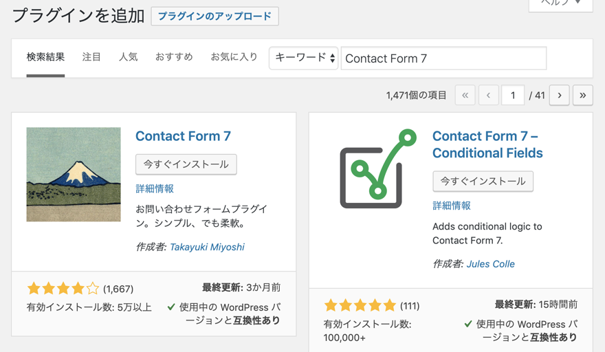 - WordPressの管理画面からプラグインを検索