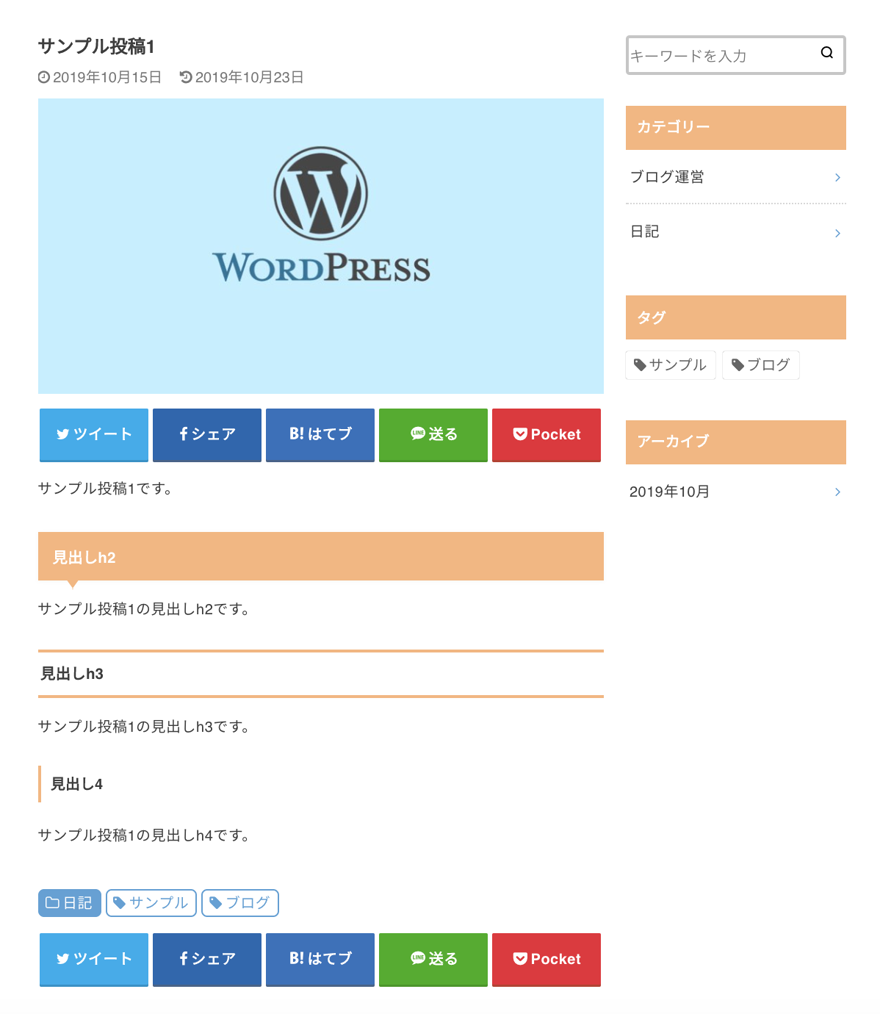 カスタマイズ後ブログのデザインはWordPressに適用されているテーマをカスタマイズすることで変更できます。