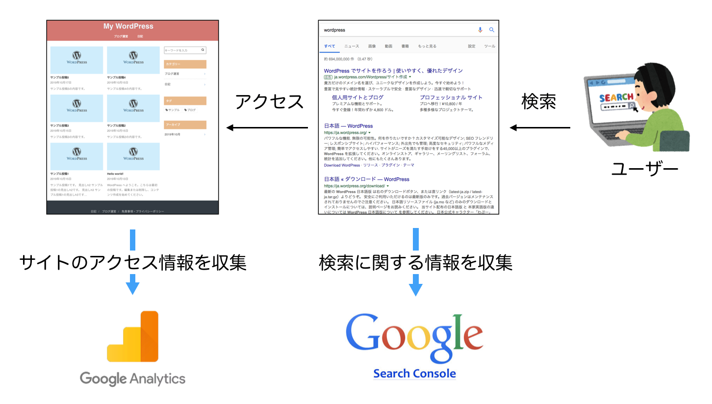 GoogleアナリティクスとGoogle Search Consoleの違いをまとめると以下のようになります。